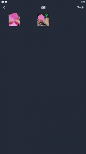 2、点击后会弹出一个新页面,在该页面里选中要处理的视频,接着点击右上角的【下一步】按钮。
