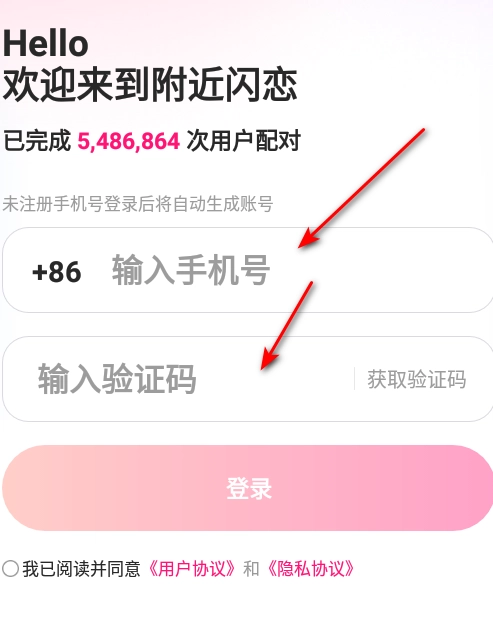 进入附近闪恋,点击号登录