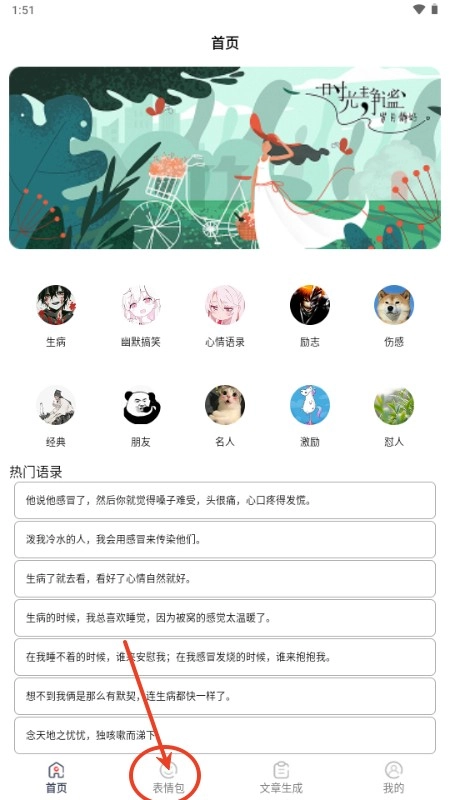 2、顺利进入首页后,可根据自己的需求选择表情包栏目,具体操作可参考图示。