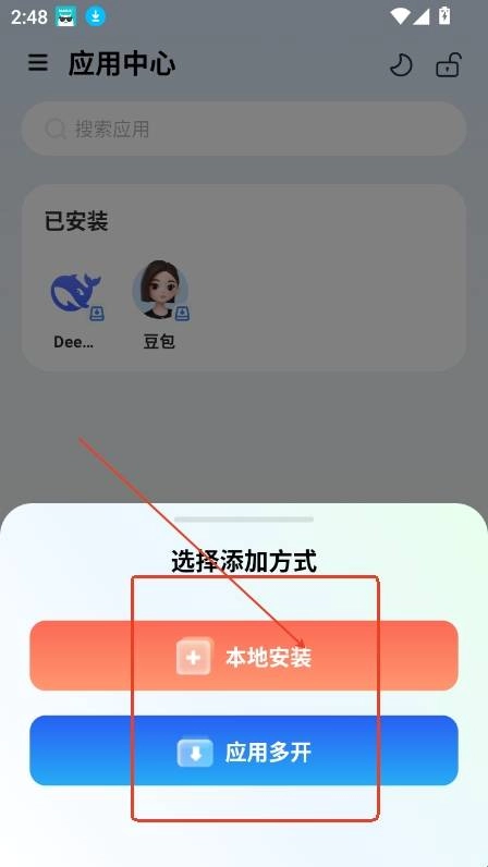 3. 选择添加方式:可以选择本地,或者是应用多开。