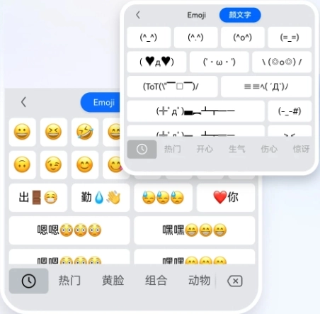 2. 还能玩表情斗图之类的,只要点选表情包选项,就能找到动态表情包和颜文字表情包,助你在聊天时变身最亮眼的表情达人!