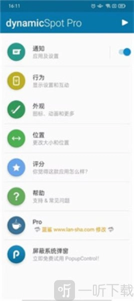 7、iPhone的灵动岛无法进行定制,不过dynamicSpotpro具备这个功能,你能够调整互动设置,决定弹出窗口何时显示或隐藏,以及哪些应用程序应该出现在其中。