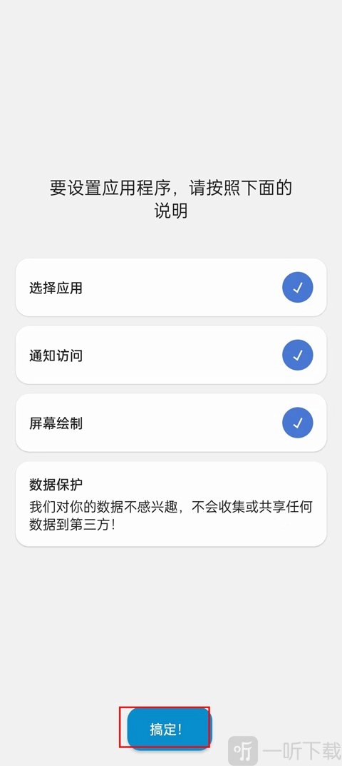 1、接下来我们需要授予软件权限,待所有权限都给予完成后,点击“搞定”按钮就能进入功能界面了。