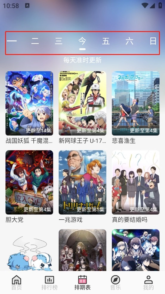 3、“排期表”会呈现每日动漫的更新动态,方便大家及时了解自己喜爱的动漫是否更新。
