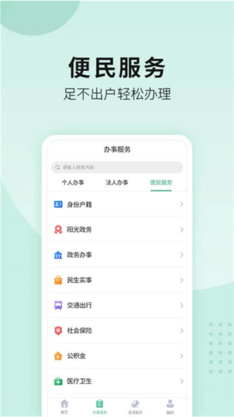 指尖办事:让数千项政务服务与生活服务都能通过移动终端完成,真正实现业务办理不受时间地点限制。