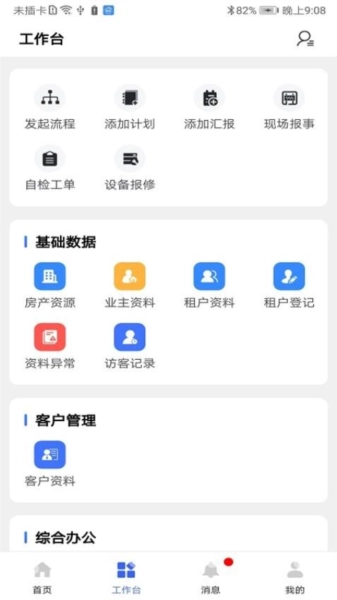 2、在应用工作台,看到诸多工作功能,并能一键操作