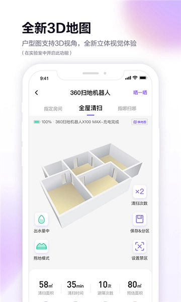 1、实时把控清扫进度:借助360扫地机App,用户能够便捷知晓扫地机的运行状态,直观查看清扫轨迹。