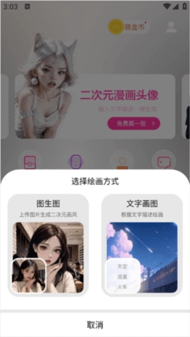 这里提供两种绘画模式,分别是图生图和文字生图,本次选择图生图模式。