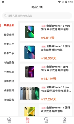 1.系统会推荐大量精选的电子产品,用户可自由选择租赁。