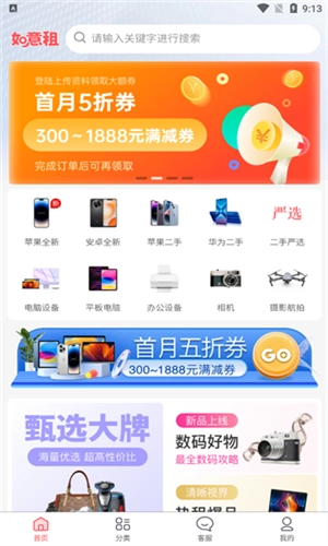 1、在如意租首页,就能翻找需要的商品进行租赁