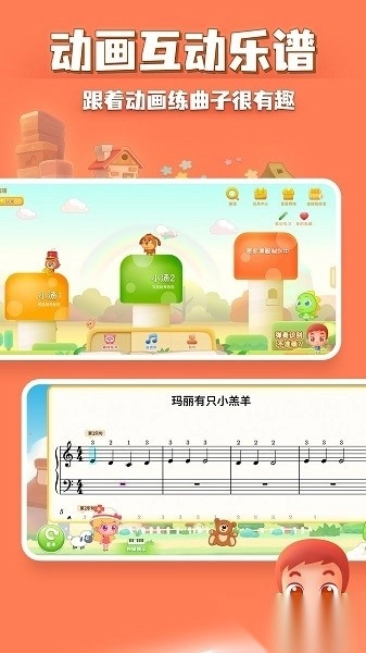 4. 动画曲谱以动态方式展示音符,使练习过程更具趣味性,降低枯燥感,从而激发孩子的学习兴趣。