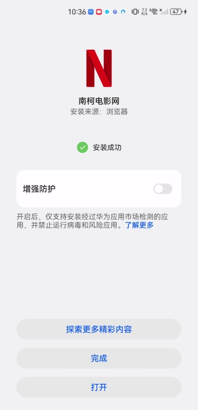 5、出现绿色对勾即表示“已成功完成”,点击“打开”按钮,就能开始体验。