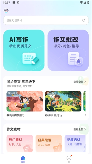 3.范文与素材板块:这里有丰富的作文素材库和精选优秀范文,只需输入您想查找的关键词,就能快速获取所需内容。