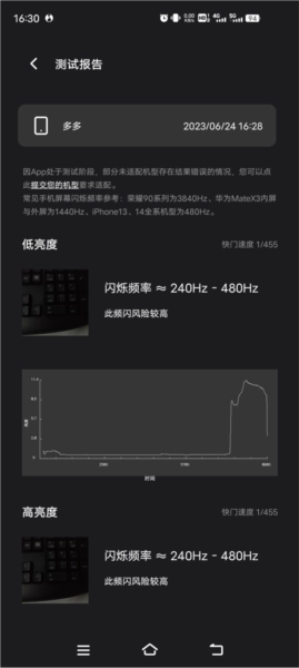 8、提供详细测试结果报告:会生成包含频闪情况、屏幕参数等信息的详细测试结果报告,帮助用户清晰了解屏幕性能。