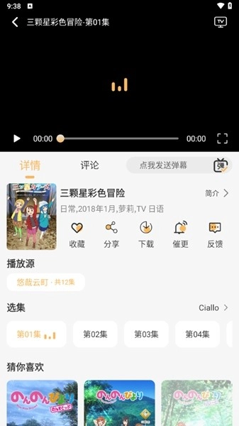 4.用户交流与分享平台:悠哉云町设有用户评分及评论功能,用户能够对已观看的动漫作品发表评价与留言,和其他动漫爱好者交流观后感受,分享自己喜爱的作品并进行推荐。