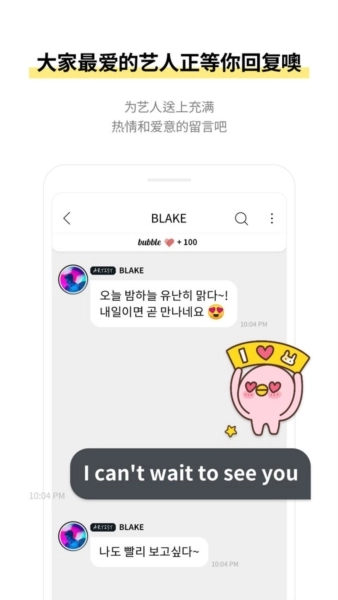 3、用户能够用自己的语言与偶像聊天,还能观看偶像亲自发送的独家内容,也可以阅读明星的独家内容,并用自己的语言回复他们。