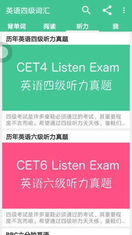 1、英语四级词汇模块专为有英语考级需求的用户打造,通过这款英语学习软件,你能随时开展在线练习,涵盖英语单词、听力、阅读理解、完型填空等多方面训练,为你的考试提供有力支持。
