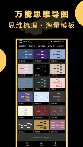 作为一名使用思维导图多年的资深用户,我对《万能思维导图》的出色表现深有体会。这款应用凭借独特的功能和优秀的设计在众多同类产品中脱颖而出,为用户提供了丰富多样的思维导图风格,让每一张导图都能呈现出绚丽多彩的视觉效果。无论是制作规整的主题式表格,还是进行在线办公协作,软件都能轻松应对。它支持在主题中添加画布背景的功能,大大增强了思维导图的表现力,同时还提供了一百多个精心设计的模板,帮助用户快速完成导图的美化工作。