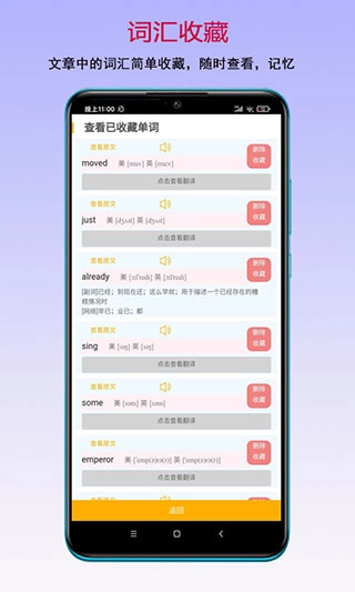 读书宝能让你在阅读时随时收藏碰到的单词,还能借助记录的单词来回顾文章。