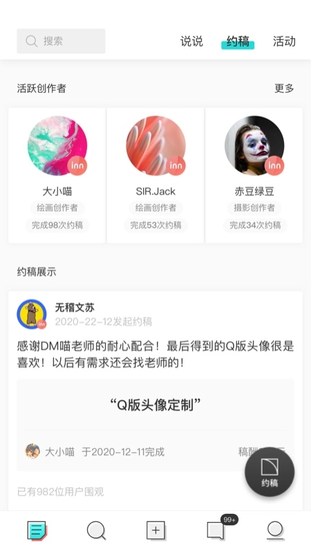 用户能够在该平台发布个人创作,展现自身绘画能力,和众多用户交流分享绘画技巧,从而获取更多约稿机会。