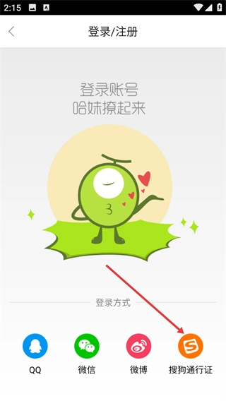 2、在登录注册界面选择【搜狗通行证】登录方式,进入登录页面。