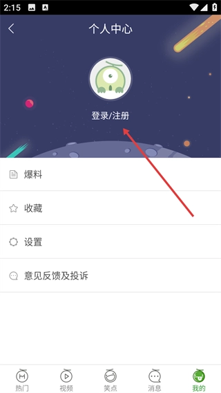 1、在个人中心页面找到并点击【登录/注册】按钮,即可进入登录注册界面。