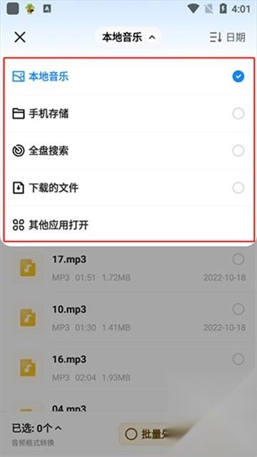 5、这里可以选择本地音乐、储存、全盘搜索的文件等。
