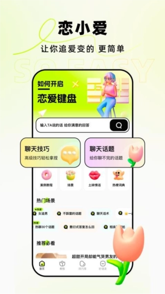 总之,恋小爱这款聊天话术教学应用十分可靠,它不只是一个供人学习和成长的平台,更是一部社交技巧的实用指南。不管是希望改善人际关系,还是渴望在恋爱中取得成功,恋小爱都是你必不可少的帮手。快来加入我们,开启属于你的社交新旅程吧!