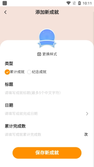在我的勋章功能里,能够把自己的各类成就添加记录并保存起来。