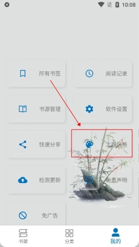 1、打开后先进入【我的】界面,找到并点击【主题风格】;