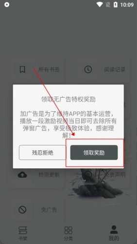 2、接着会弹出选项,点击【领取奖励】并观看一个视频,就能完成当天的设置啦。