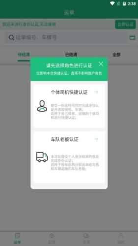 2.号快速注册功能要求用户完成身份证认证并提供相关证件,以此保障货主信息的安全性。