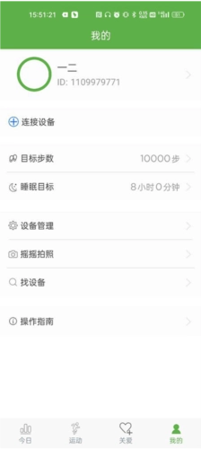 然后就可以着手进行连接操作了,连接成功后进入“我的”页面,再进入“个人设置”来配置个人健康参数,参数设置完毕后,就可以开始使用各项功能了。