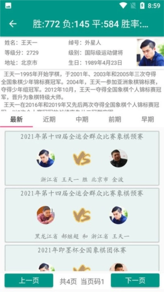 2,赛事收录范围广泛:平台汇聚了十万部大师对战的完整棋局谱,覆盖象甲联赛、全国智力运动会、全国象棋个人锦标赛、国际象棋赛事等20余个不同类型的专业赛事。