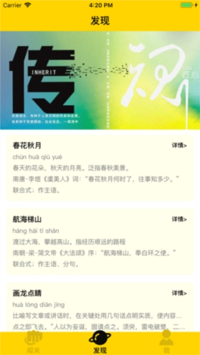 软件里的每个成语都配有相应的词义解析,支持在线查询。