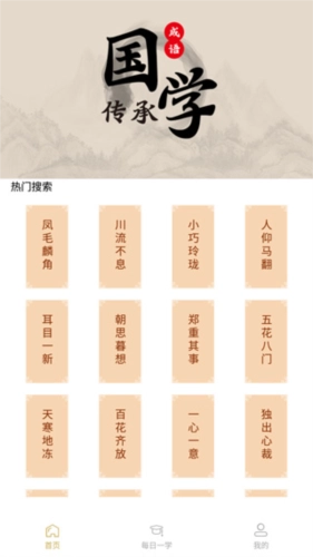 3、此外,点击“每日一学”,你还能看到系统自动推送的成语知识。
