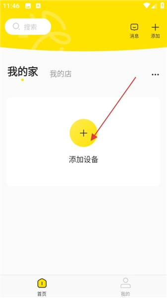 1、打开萤享云视频,在首页的“我的家”或“我的店”板块中,点击“添加设备”按钮,进入设备添加流程,从而开启监控设备的连接操作。