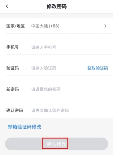4、可以直接修改密码,也可以通过邮箱验证码来修改,点击“确认修改”按钮即可完成操作。