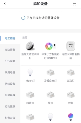 2、可选择添加设备、扫描设备、添加智能,这里以添加设备为例;