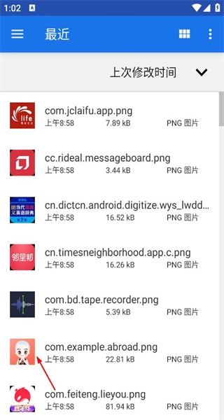 3、进入文件选择页面后,查看最近修改过的图片文件列表,从中挑选一张图片,进入预览页面。