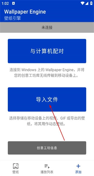 2、进入功能选择界面,查看计算机配对、文件导入等相关选项,点击“导入文件”选项进入文件选择页面。
