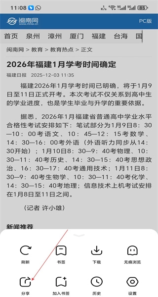 4、在菜单功能选项里找到分享按钮,用户点击此按钮,就能分享该资讯。