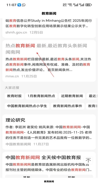 1、启动软件后,进入教育新闻搜索页面,浏览各类教育资讯列表,可挑选感兴趣的资讯进行查看。