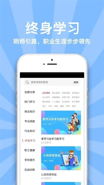 5、设有终身学习板块,用户可在此学习各类终身学习相关知识,实现自我的持续成长与长期受益。