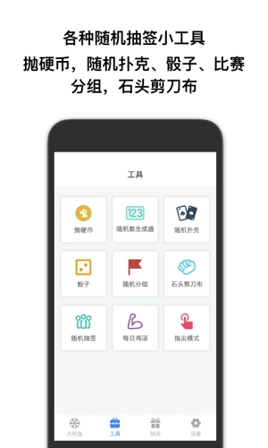 《抽签助手》是襄阳大龙猫信息技术有限公司开发的一款生活服务类软件,能帮你快速做出决定。生活中难免遇到犹豫不决、难以自行抉择的时刻,这款软件正好能为你高效解决选择难题!它了转盘抽奖、抽签器、骰子、活动抽奖、决定选择、随机数生成器、抛硬币、随机扑克、石头剪刀布等多种随机抽签娱乐小工具,对于有选择困难症的用户来说,绝对是贴心的好帮手。别再纠结啦,现在就来体验吧!
