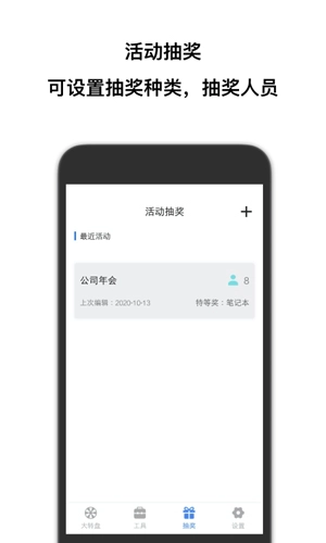 活动抽奖:公司年会抽奖,支持修改奖品、抽奖人员。
