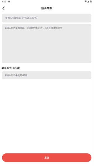 3、当同时遇到问题时,用户可以进行投诉举报并填写具体的举报内容,软件在收到反馈后会尽快处理解决。