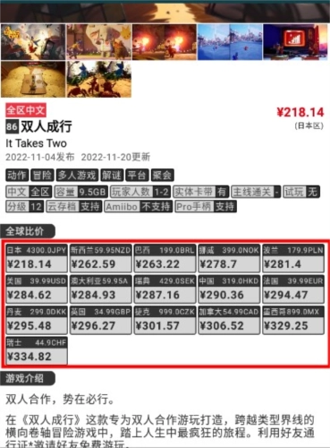 3、在当前界面向下滑动,找到“全球比价”板块,就能查看各国区域的详细价格信息。