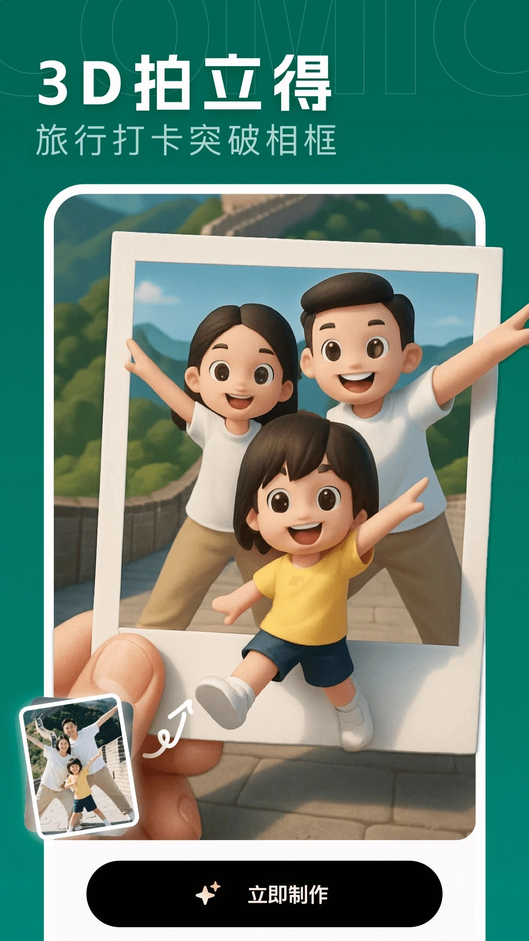 5.定期更新与用户反馈机制:开发团队每月都会推出新的风格模型并进行功能优化,像2025年9月上线的“潮流角色手办特效”,就能生成3D立体的漫画形象。用户可以借助应用内的反馈渠道直接提出建议,助力产品不断迭代升级。