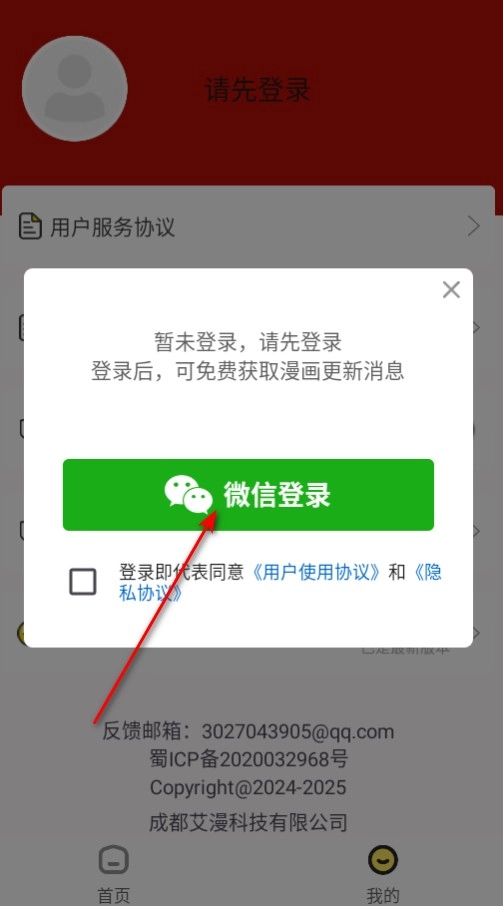 本站进入红番茄漫画软件,点击我的